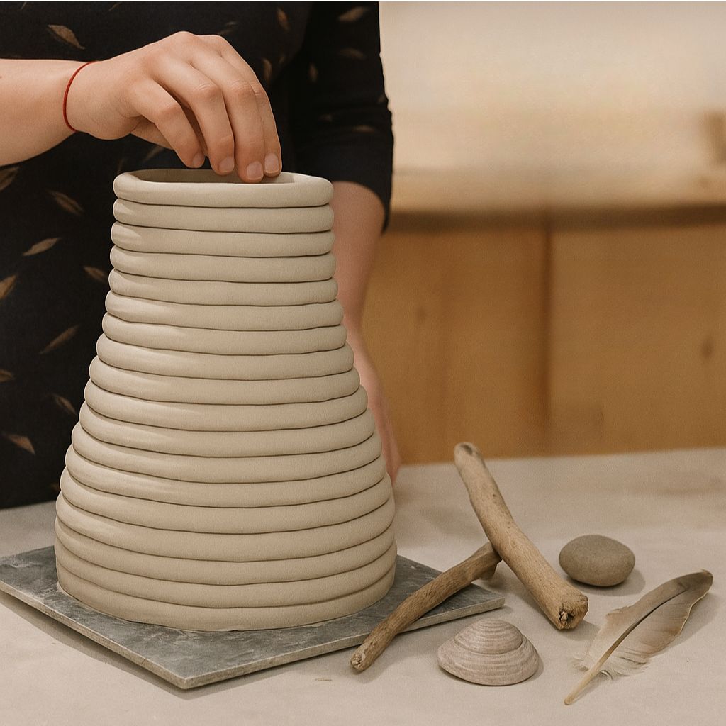 Enjoy a slow-paced, creative Sunday and learn to build your own vase using ancient coiling techniques. Natural tools like feathers, stones, sticks, and shells will be used for texture.